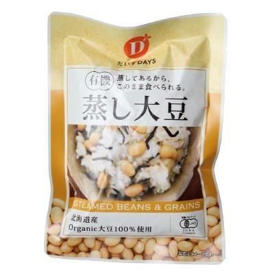 「からだに良い大豆を毎日食べて欲しい!」との思いから、 安心の有機だいずのおいしさと栄養を、そのままぎゅっと閉じ込めた蒸し大豆です。蒸し豆は水煮と違い、水の中で加熱せず蒸しているので、溶出しやすいビタミンやたんぱく質などの豆の栄養素が凝縮されています。同時に旨み成分も蒸し大豆は多く残っているため、大豆の美味しさ、旨みが圧倒的に強く感じられます。大豆そのものの甘さが最大限に引き出されており、その甘さはマロン級。おやつにもぴったりです。