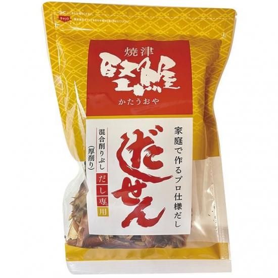 出汁専用だから「だしせん」。コクの豊かな宗田鰹(そうだがつお)、甘みが素晴らしい鯖(さば)、香りの良い鰹(かつお)の3種類をミックスしました。深みのある濃厚な出汁がとれる厚削りです。うどんやそば、煮物、みそ汁、おでんなどにお使いください。おつまみにしても美味しいです。噛めば噛むほど旨味が溢れ、たんぱく質や鉄分の補給にもなります。 [新丸正]
